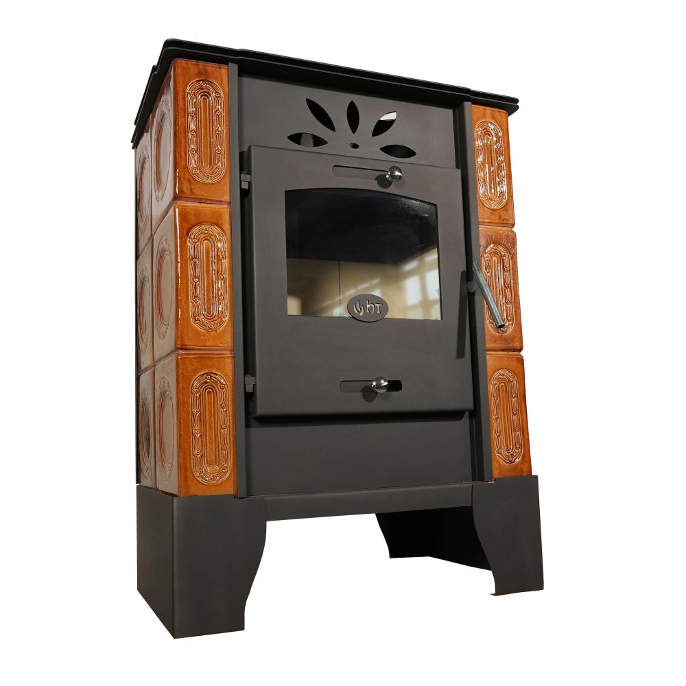 Kályha kerámia oldalakkal és díszes lábakkal a kis- és közepes méretű helyiségek hatékony fűtéséhez.