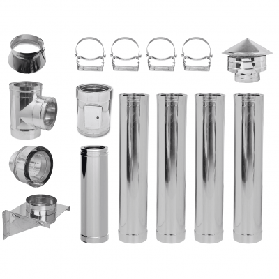 Két különböző átmérőjű, rozsdamentes acél égéstermék-elvezető csőből készült, amelyek között 2,5 cm-es hőálló szigetelés található.