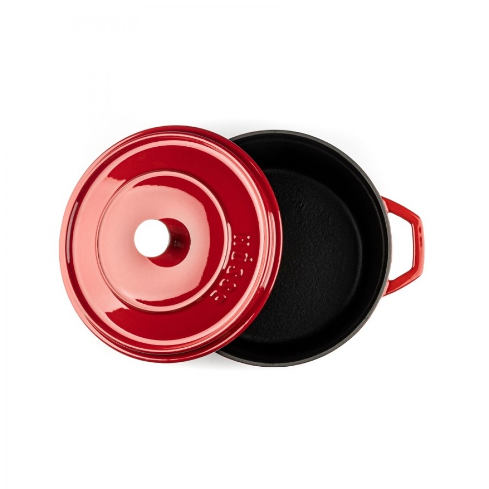 Univerzális öntöttvas edény zománcozott bevonattal és modern kialakítással, amely bármilyen tűzhelyet jól mutat.
