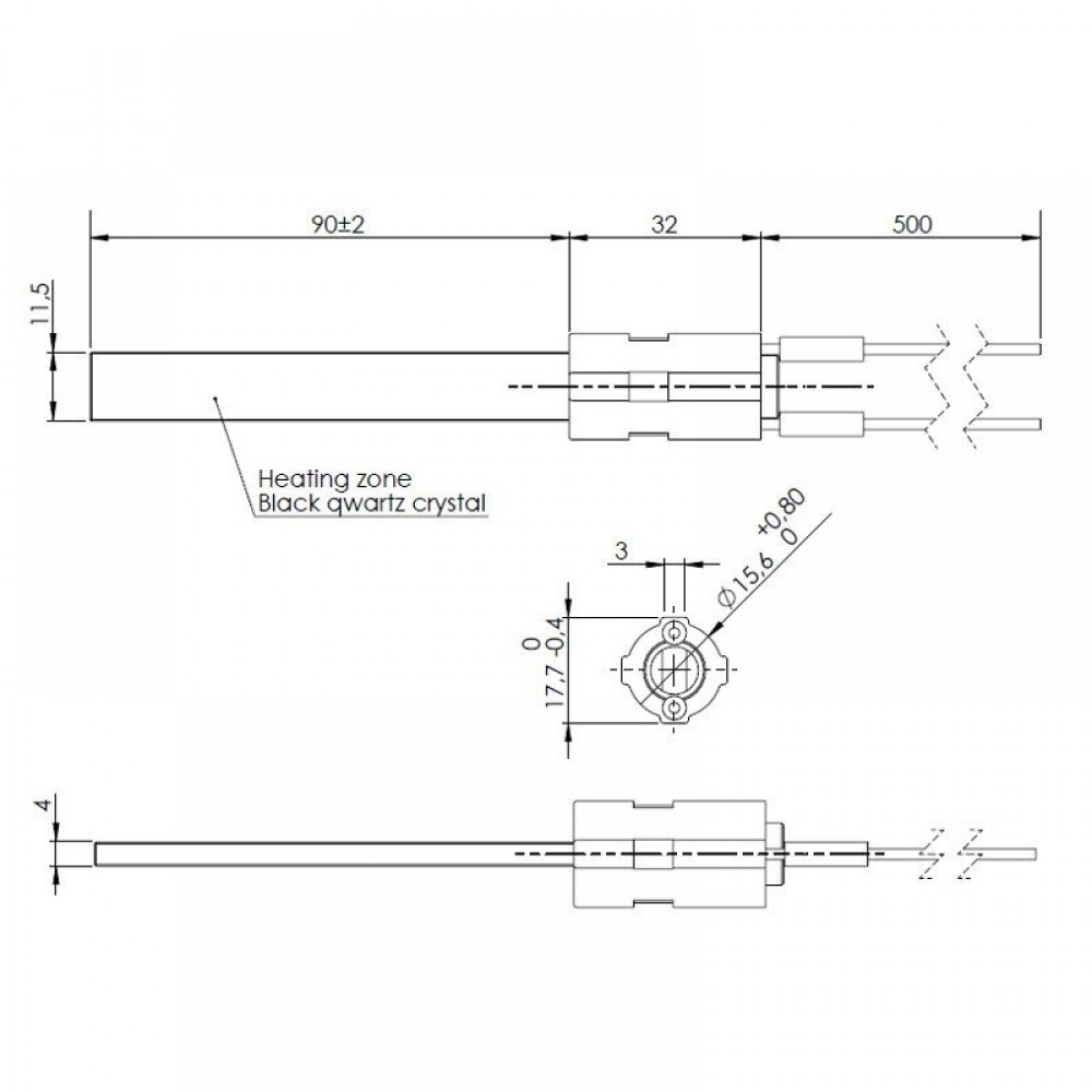 Fekete kvarckristály ellenállás pelletkályha világításhoz - PS14-230-300 gyújtó, pellet és faforgács meggyújtására tervezve kazánokhoz és égőkhöz.