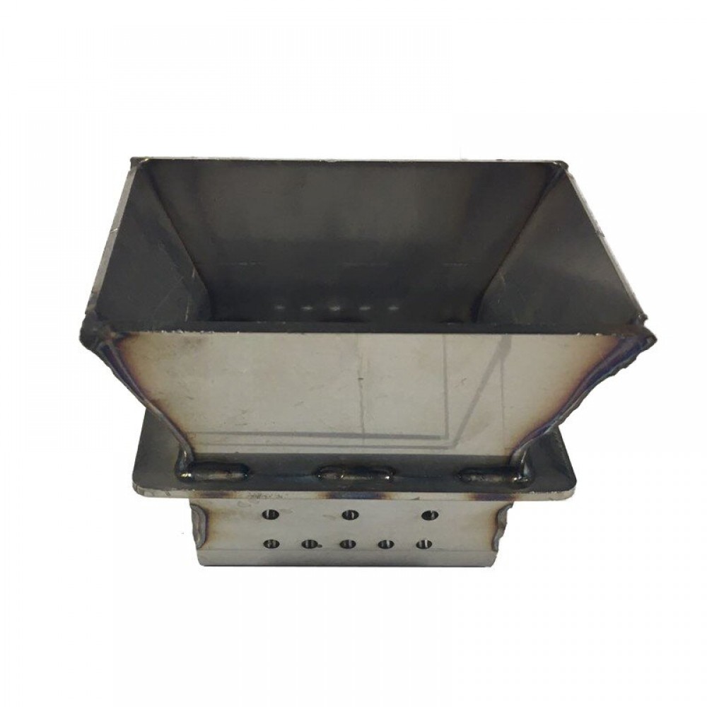 Rozsdamentes acél AISI 430 égőfazék kosár, 2,5 mm falvastagság és a fűtőelem (gyújtó) furat az égőfazék hátsó részén található.