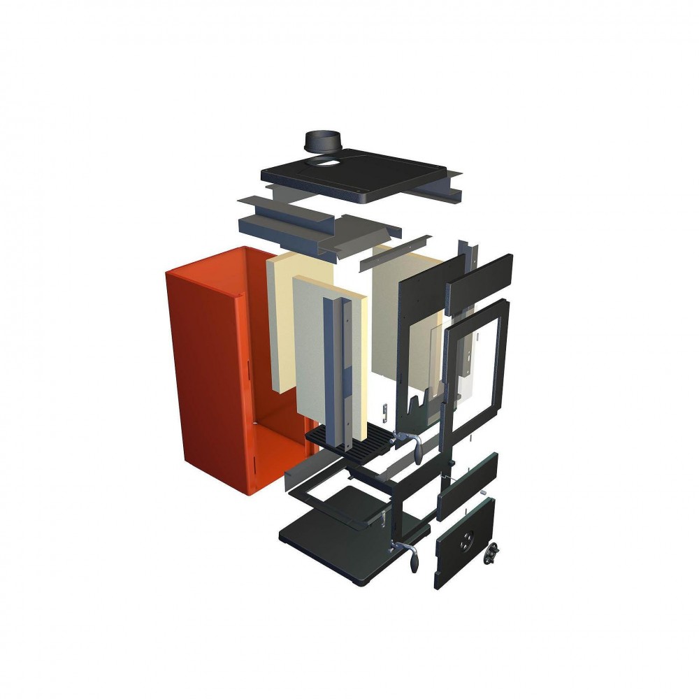 - Égésteret tűztéglával bélelték, amelyek felhalmozzák a hőt és növelik az égési hőmérsékletet.